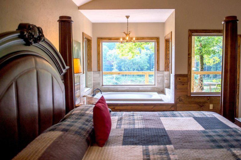 The kitchen sink window frames a bald eagle’s nesting tree across the river and guests have watched these majestic birds capture fish in the stream. Native rainbow trout, river otter, beaver, muskrat, kingfishers, and great blue heron are just a few of the other creatures sharing the river with you during your stay. After a day of hiking, fishing, or boating (canoeing, rafting, or kayaking) or exploring the Ozark culture, you may relax in a double marble whirlpool tub.